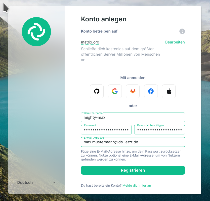 Falls du bereits Mitglied bei einer Matrix-Serverinstanz bist, kannst du Schritt 1 überspringen.