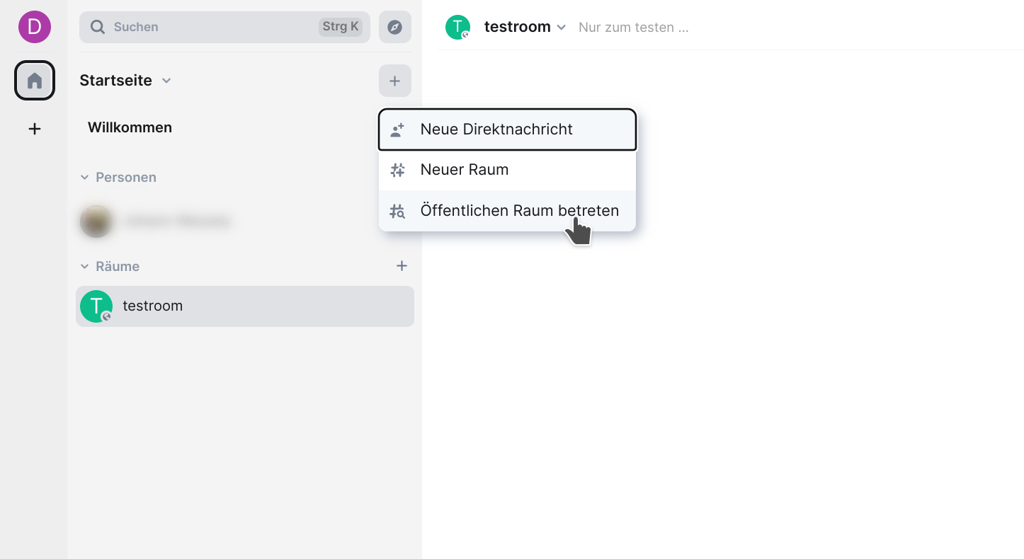 Alle Chatrooms sind in einer Gruppe (“Space”) organisiert: